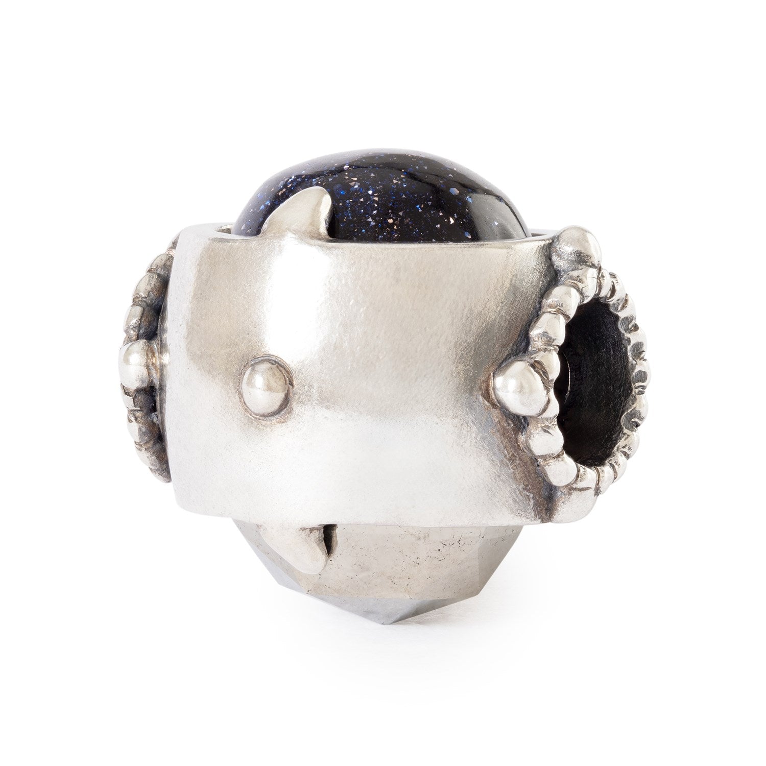 Esta bead escultórica está elaborada en plata esterlina y sostiene dos piedras en equilibrio. La pirita ofrece fuerza y protección, mientras que la piedra azul de oro aporta calma y claridad. Diseñada para adaptarse a pulseras, brazaletes y collares, se convierte en un talismán personal que puedes llevar siempre contigo.