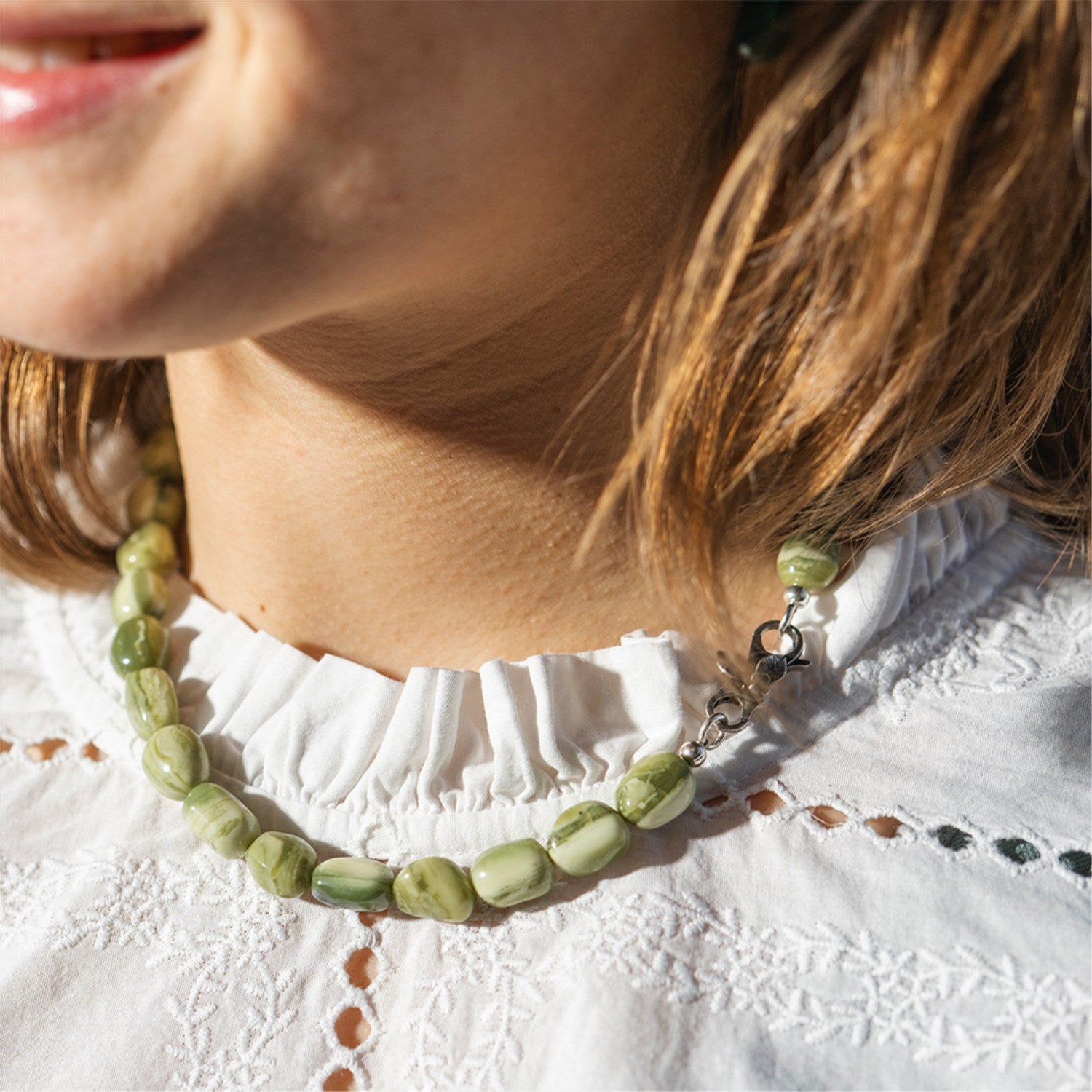 We also offer the You Necklace with natural green yellow gemstone. The gemstone strengthens optimism, lifts energy, and adds lightness and brightness to the mind, a beautiful reminder to find calm and positivity in everyday life. The gemstone appears in soft shades of green and yellow.