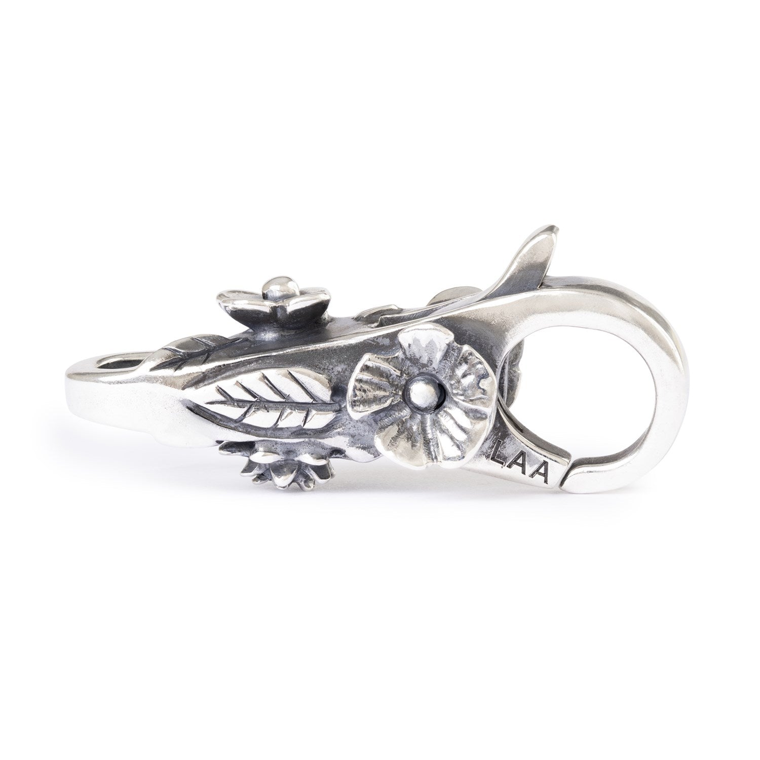 Un cierre detallado decorado con flores y hojas en flor. El diseño simboliza la conexión y el crecimiento, reuniendo cada historia en un flujo delicado y armonioso.